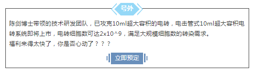 現(xiàn)在,在電轉(zhuǎn)這一細(xì)分的細(xì)胞生物學(xué)高科技領(lǐng)域,中國人的科研力量已經(jīng)出現(xiàn)!已經(jīng)落地實(shí)現(xiàn)商業(yè)化。已經(jīng)加入激烈的市場競爭,正面挑戰(zhàn)amaxa技術(shù)!已經(jīng)在美國和中國多個(gè)重要科研院所(都是具有多臺amaxa設(shè)備,多年amaxa使用經(jīng)驗(yàn)的實(shí)驗(yàn)室)得以驗(yàn)證,成功改寫了用戶的看法,實(shí)現(xiàn)了商業(yè)市場競爭的勝利。